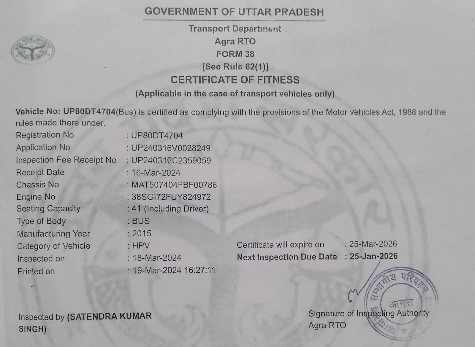 Buses are been provided to the students with proper space and comfort within the limits of their seating capacity for nominal charges. Personal attention is given to every child during their travel and the teacher escorts the students during their journey also they use to teach the social aspect of our society alongwith the traffic rules for safety. Buses depart from school to all the nearby places of Agra.